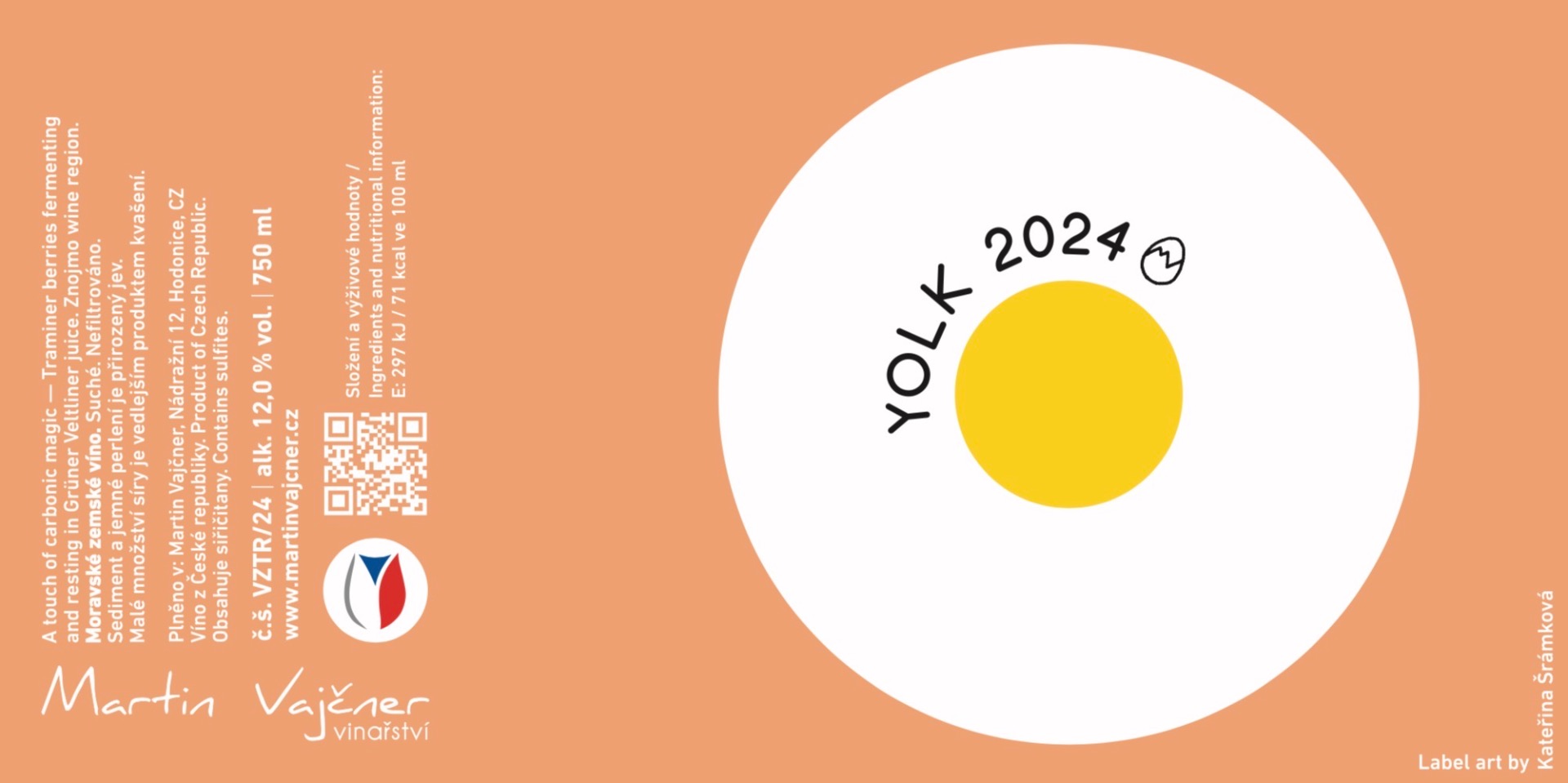 Golden white wine, somewhere between white and orange. Made from Veltliner and Traminer from terroir Stará vinice in Těšetice. Znojmo wine region. Made from vineyard in organic cultivation. The stainless-steel tank was half-filled with Traminer grapes and then topped up with juice from Veltliner. Semi-carbonic maceration of whole grapes for 10 months. No filtration, no clarification. Zero added sulfur.